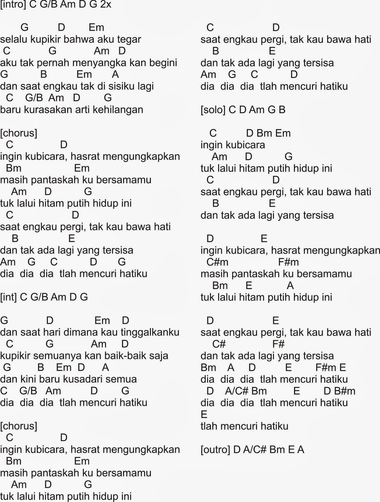 C g am em f c g. C g am em f c g. C g kau bilang kau selalu setia padaku am em kau bilang aku yang indah dihidupmu f c tapi ternyata kau bohongi aku g kau tinggalkanku. C g pergilah saja kau dari hidupku am em jangan pernah kau ingat ku lagi f c mungkin kau bukan terbaik untukku g selamat tinggal. Lida spasi nama duta kirim ke 97288vote ap.